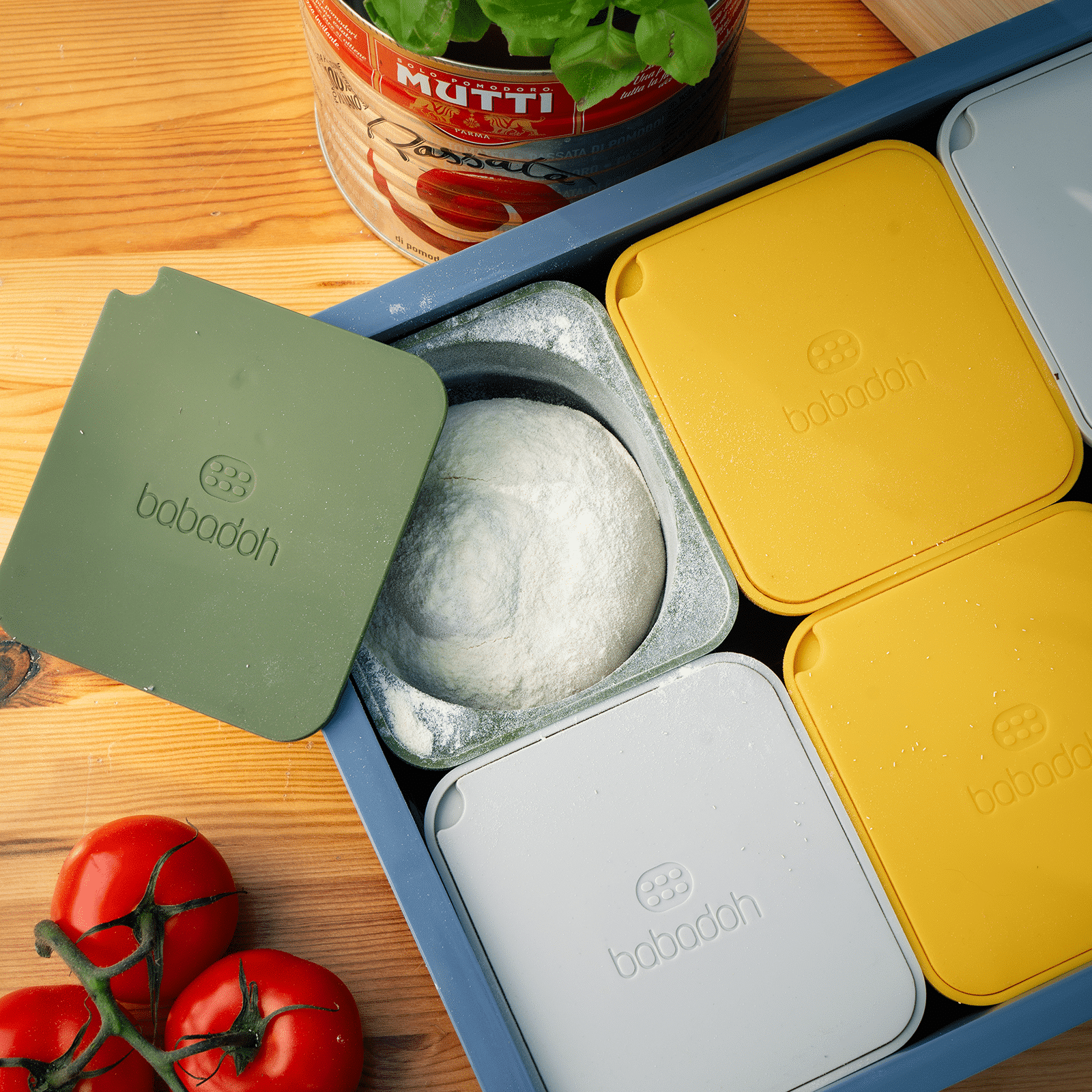 Deze deegbak/deegkrat is ontworpen om 6 bollen deeg of 6 bakjes van Babadoh in kwijt te kunnen. Het product is stapelbaar en beschikbaar in twee kleuren. Dit product komt exclusief de bakjes van Babadoh. Deze deegbak/deegkrat is gemaakt van duurzaam en voedselveilig materiaal. Het product is eenvoudig te reinigen. De afmetingen zijn 35 cm x 40 cm x 7,5 cm (h). Deze deegbak is geschikt voor de thuisbakker, want hij past in (meeste) huishoudkoelkasten. Deksel apart verkrijgbaar!