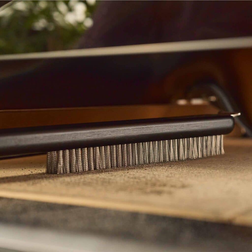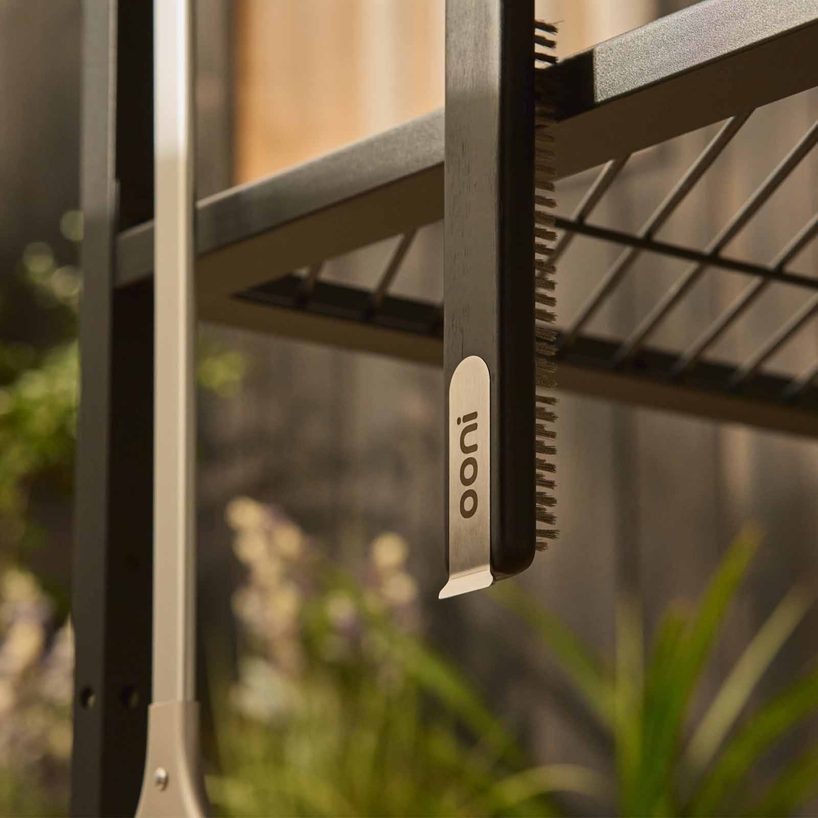 De stevige greep is gemaakt van duurzaam bamboe met een zwarte afwerking en gecombineerd met hoogwaardig roestvrij staal. Dit zorgt ervoor dat de borstel bestand is tegen de hoge temperaturen van Ooni-ovens. Dankzij de geïntegreerde ophangring berg je de borstel na gebruik eenvoudig en netjes op.