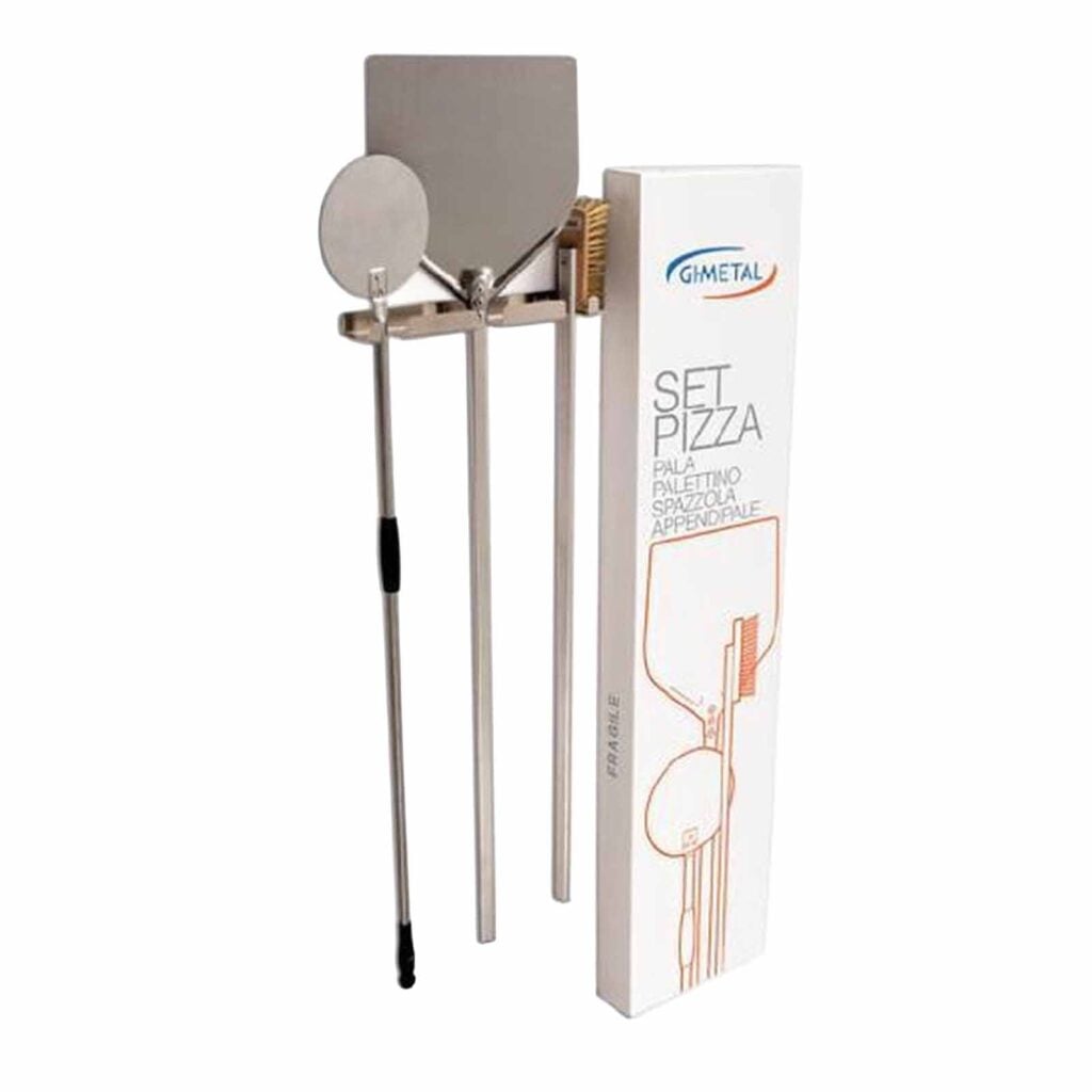 De Pizza Casa Basic scheppenset, van het merk Gi Metal bevat een pizzaschep (diameter 30 cm), een draaischep (diameter 20 cm), een ovenborstel met verstelbare kop en messing borstelharen en een muurbeugel. De totale lengte is 150 cm. Deze set bied je de basisuitrusting die je nodig hebt voor een perfect gebakken pizza. Of het nu gaat om een grote keuken, pizzeria of hobbykok met steenoven – dankzij de robuuste pizzaschep en reinigingsborstel ben je goed uitgerust voor Italiaanse avonden