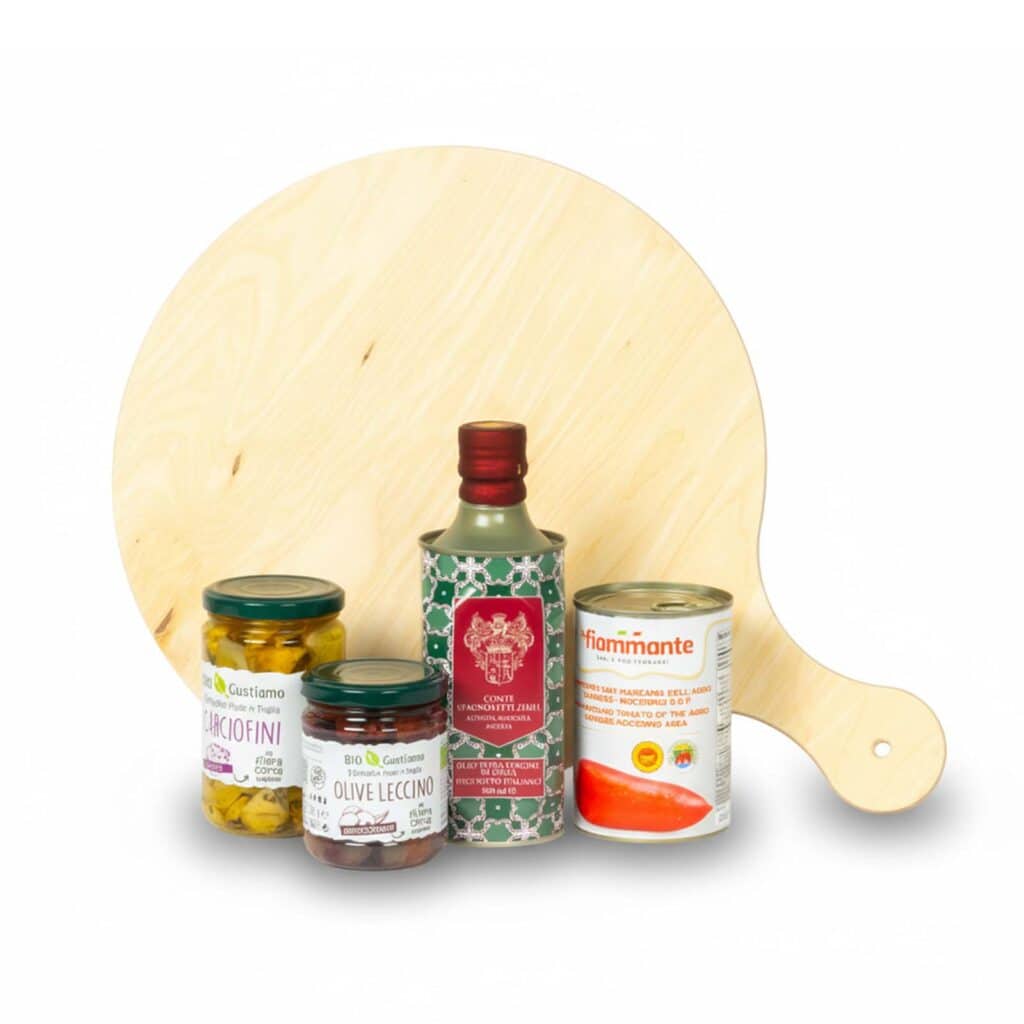 De finishing touch voor elke pizza! In dit pakket vind je alles om jouw pizza’s naar een hoger niveau te tillen: smaakvolle tomaten, olijven, artisjokken, olijfolie én een stijlvolle ronde pizzaplank om je creaties op te serveren.